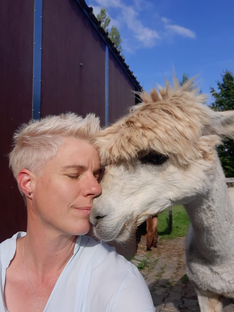Bei einer Alpaka-Wanderung im Jahr 2016 habe ich mich in diese besonderen Tiere verliebt. Damit ich Alpakas artgerecht halten kann, habe ich mich intensiv mit ihren Bedürfnissen beschäftigt, Schulungen besucht und natürlich auch die Auflagen des Veterinäramts erfüllt.